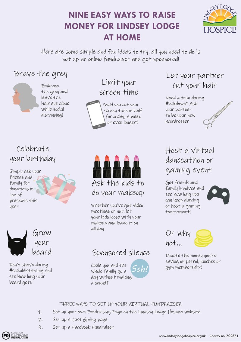 Looking for something different to do this weekend? Have fun at home with one of our nine ways to raise vital funds for Lindsey Lodge at this difficult time.